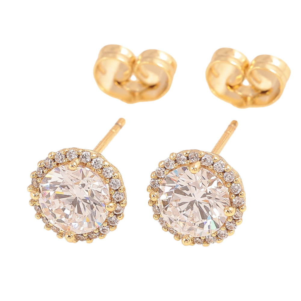 Сережки Xuping колір Позолота 14K пусети "Кристали в обрамленні" ø 9мм