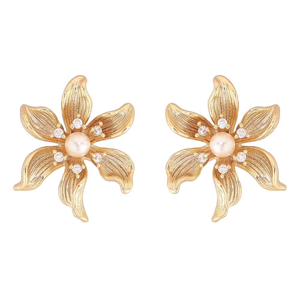 Сережки Xuping колір Позолота 14K пусети "Квіточки з перлинами"