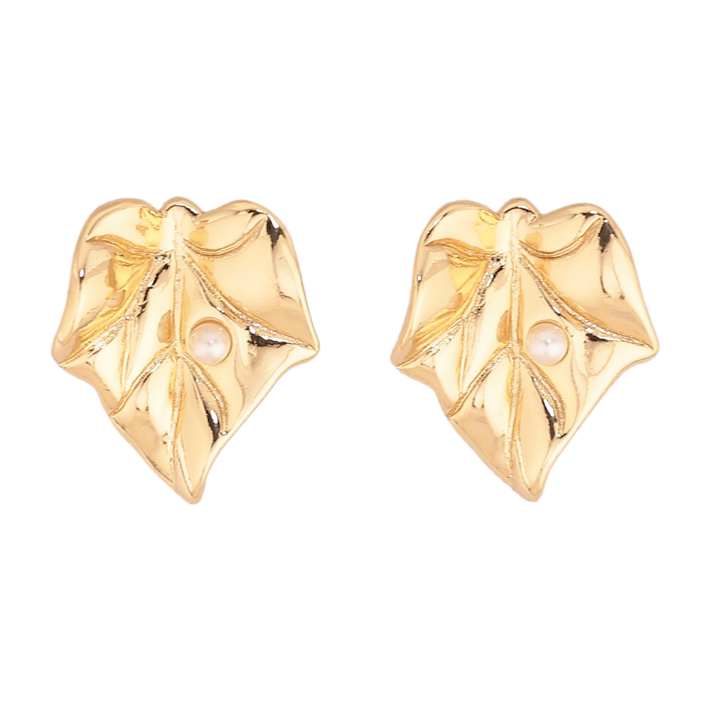 Сережки Xuping колір Позолота 14K пусети "Листочки з перлинками"