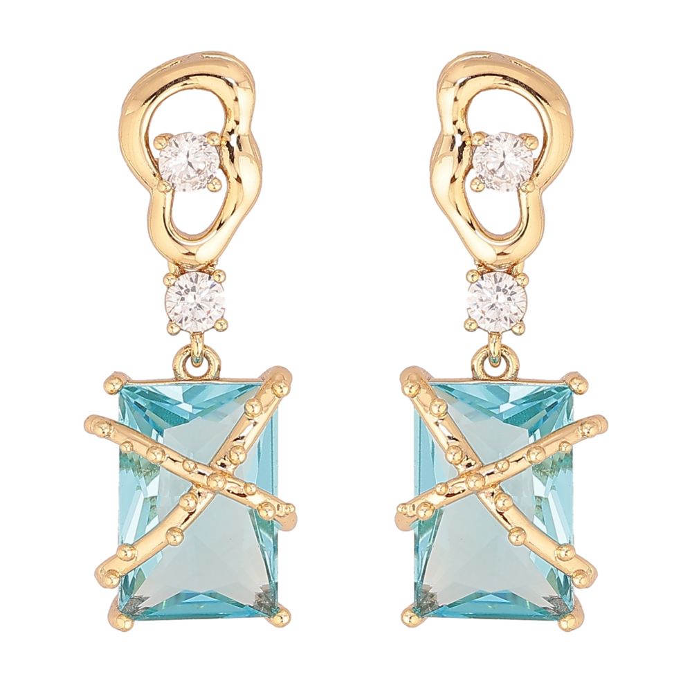Сережки Xuping колір Позолота 14K пусети "Підвіски з блакитними кристалами"