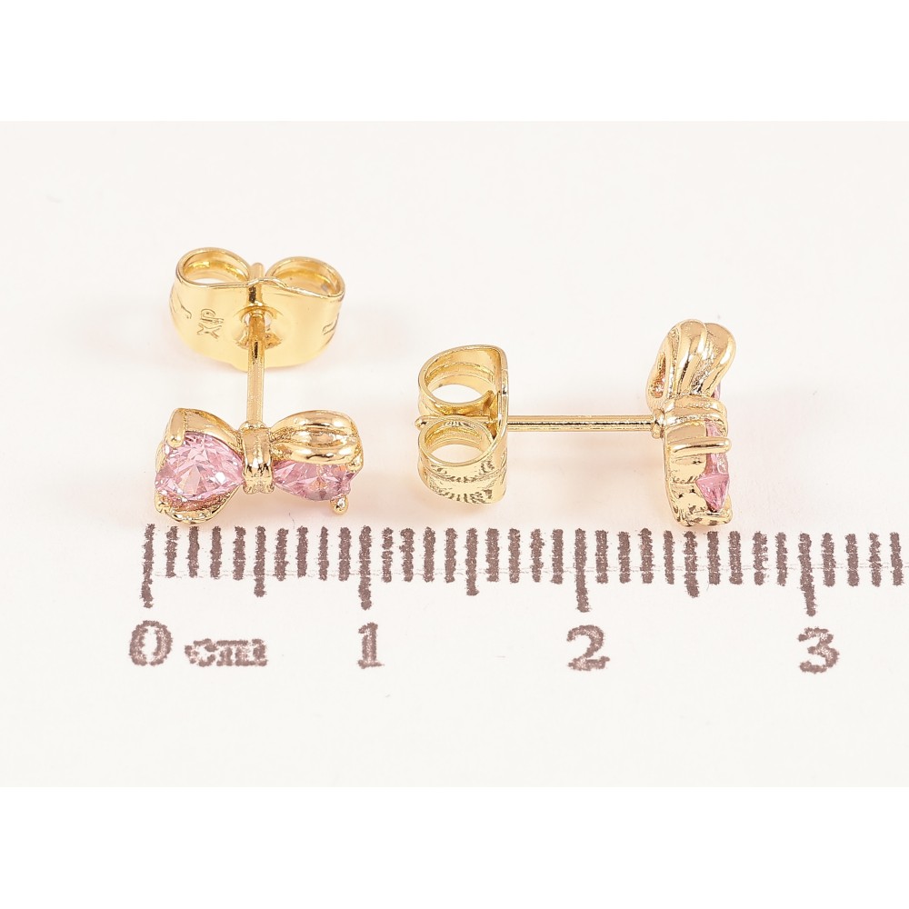 Сережки Xuping колір Позолота 14K пусети "Рожеві кришталеві банти"