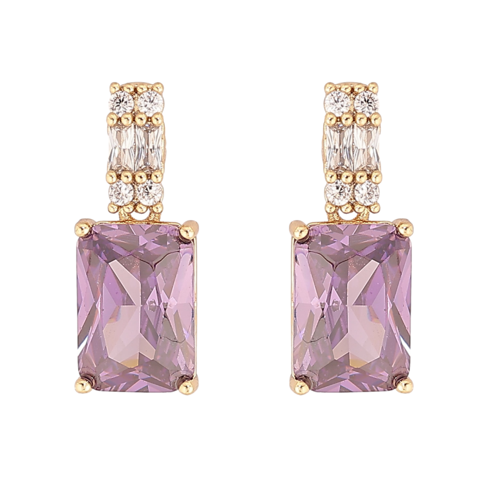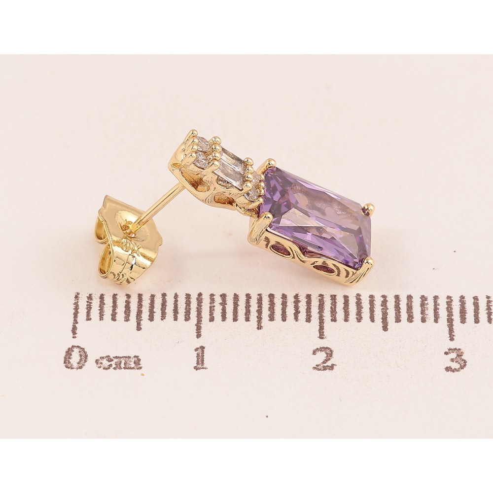 Сережки Xuping колір Позолота 14K пусети "Візерунок з бузковими кристалами"