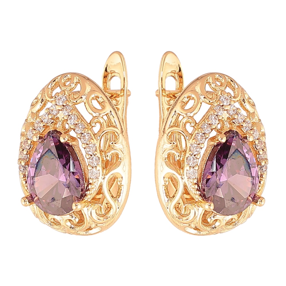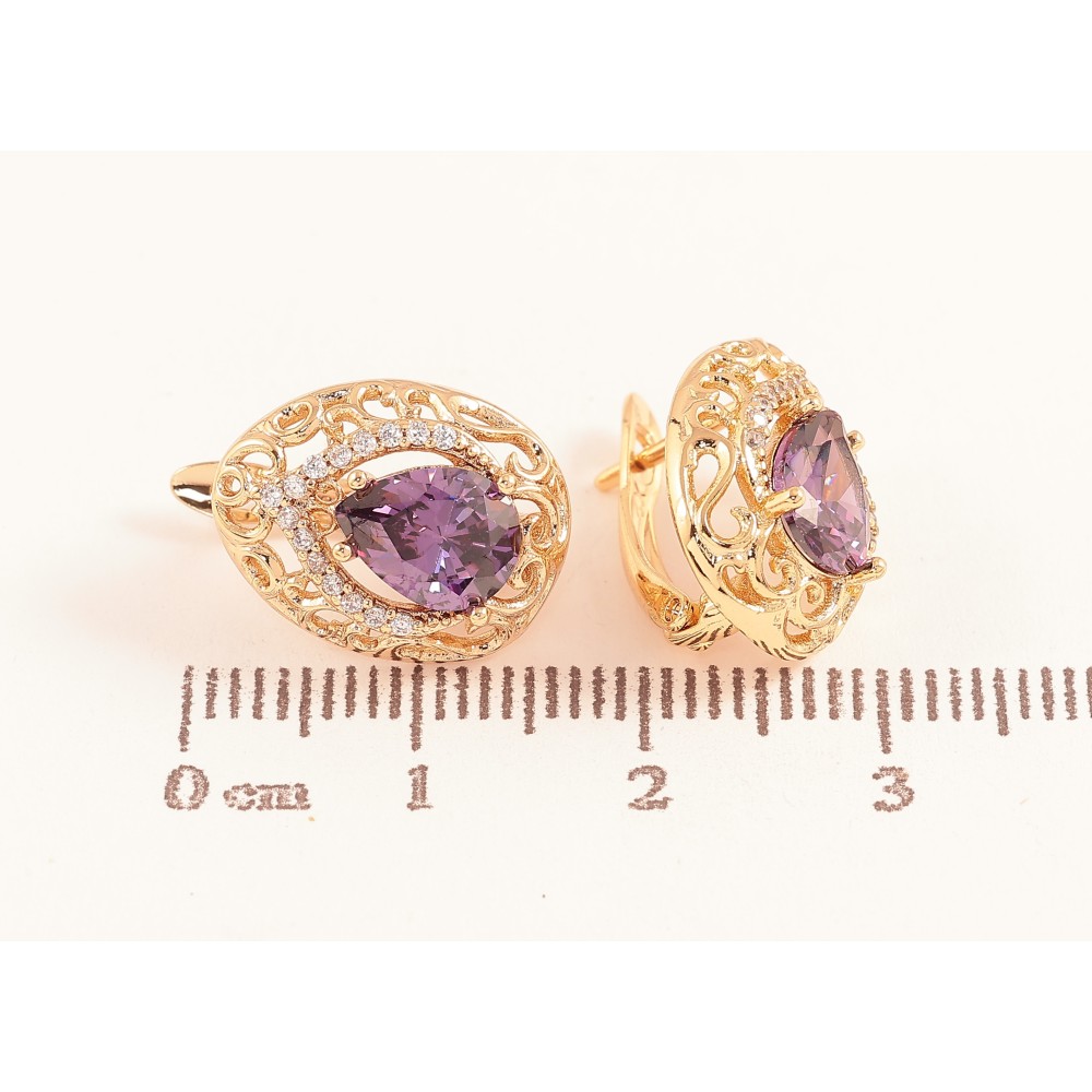 Сережки Xuping колір Позолота 18K англійський замок "Ажурні крапельки з бузковими кристалами"