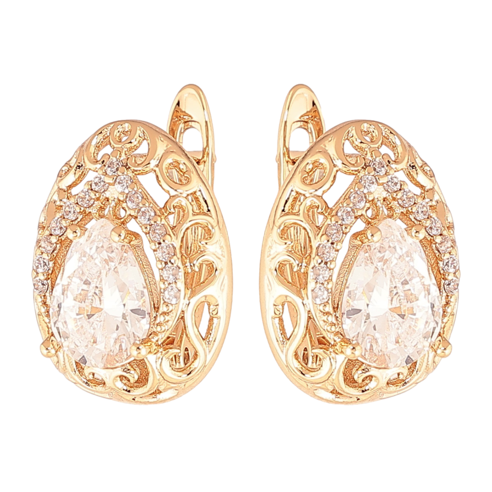 Сережки Xuping колір Позолота 18K англійський замок "Ажурні крапельки з кристалами"