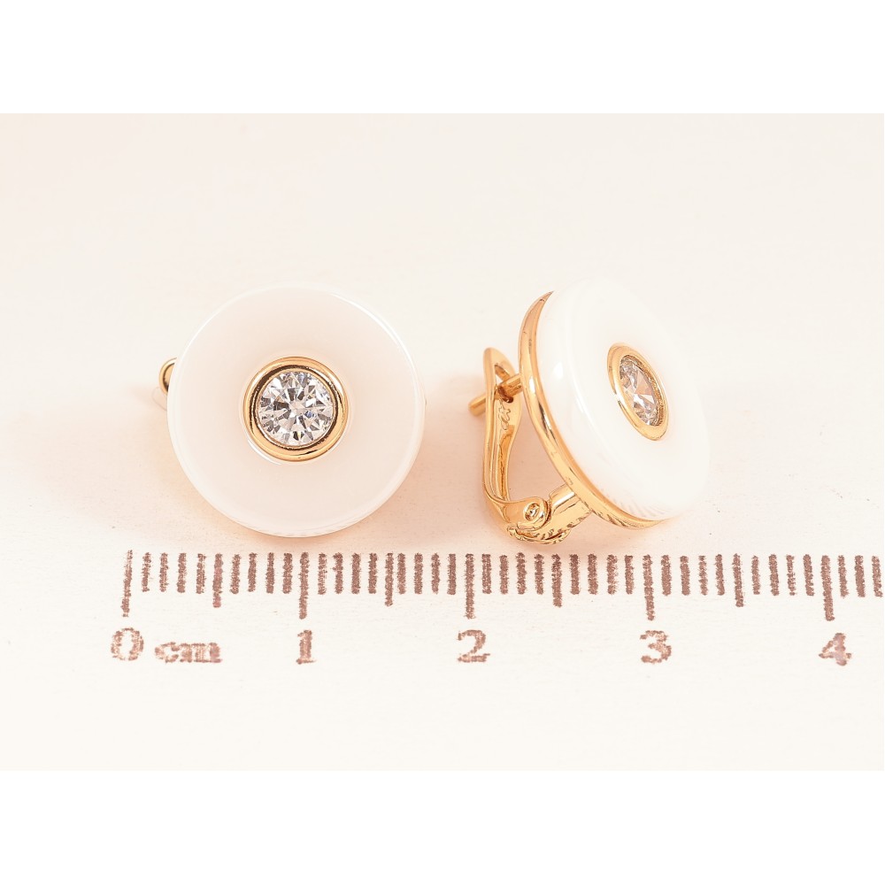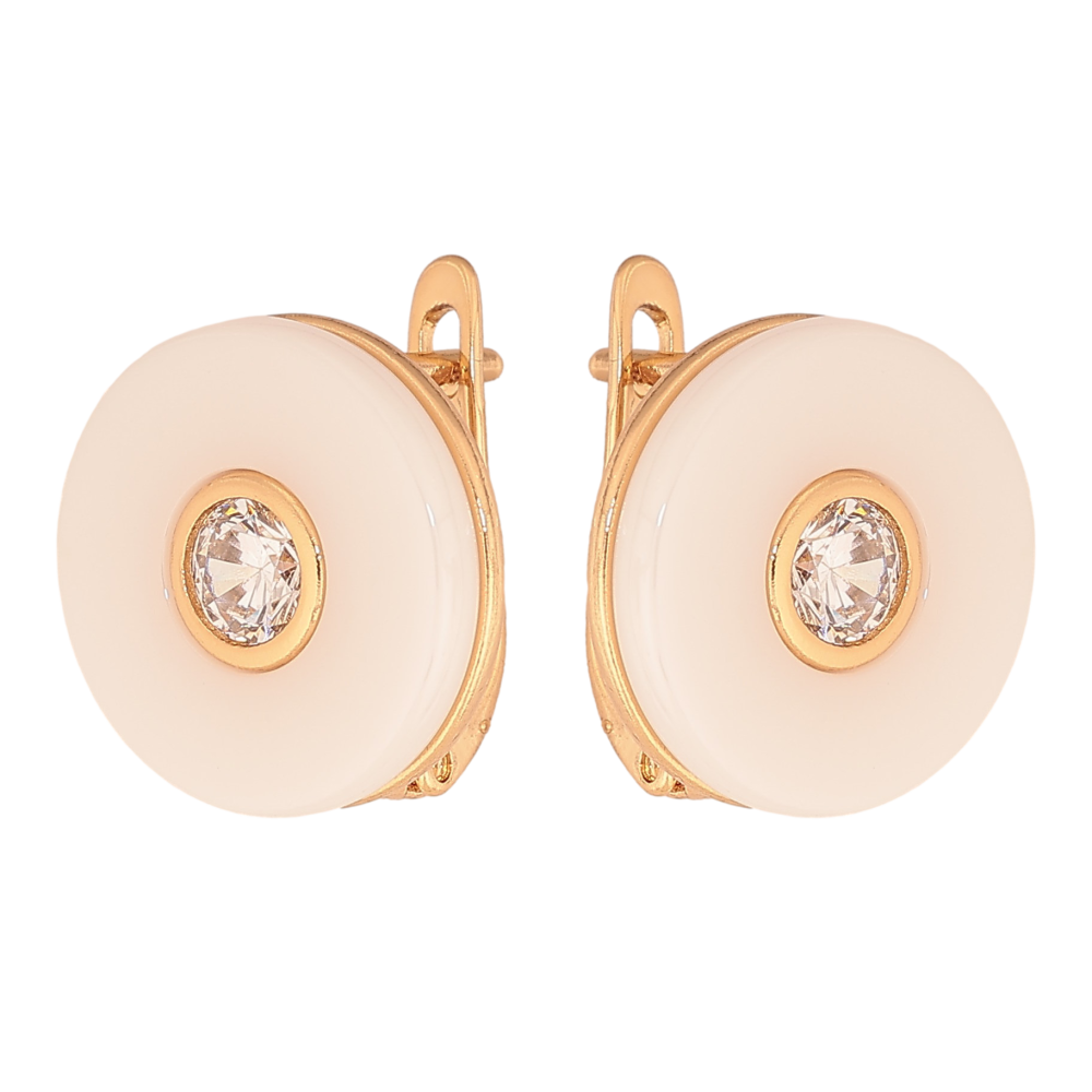 Сережки Xuping колір Позолота 18К англійський замок "Біла кераміка з кристалами"