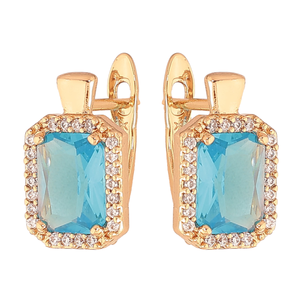 Сережки Xuping колір Позолота 18K англійський замок "Блакитні кристали в обрамленні"