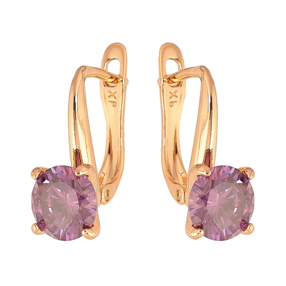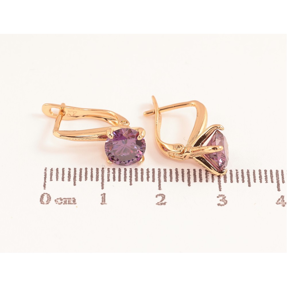Сережки Xuping колір Позолота 18K англійський замок "Бузкові кристали на дужках" ø 7мм