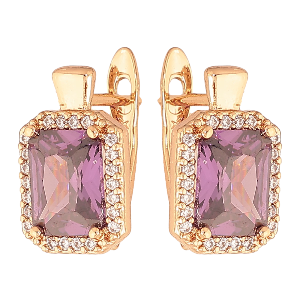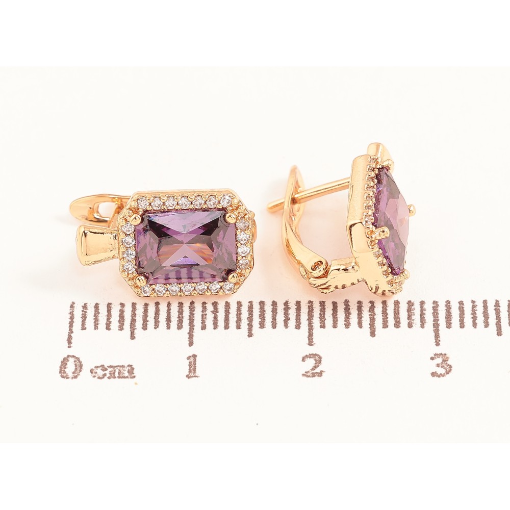 Сережки Xuping колір Позолота 18K англійський замок "Бузкові кристали в обрамленні"