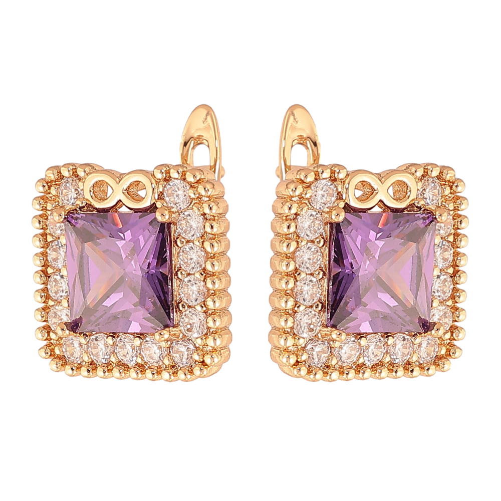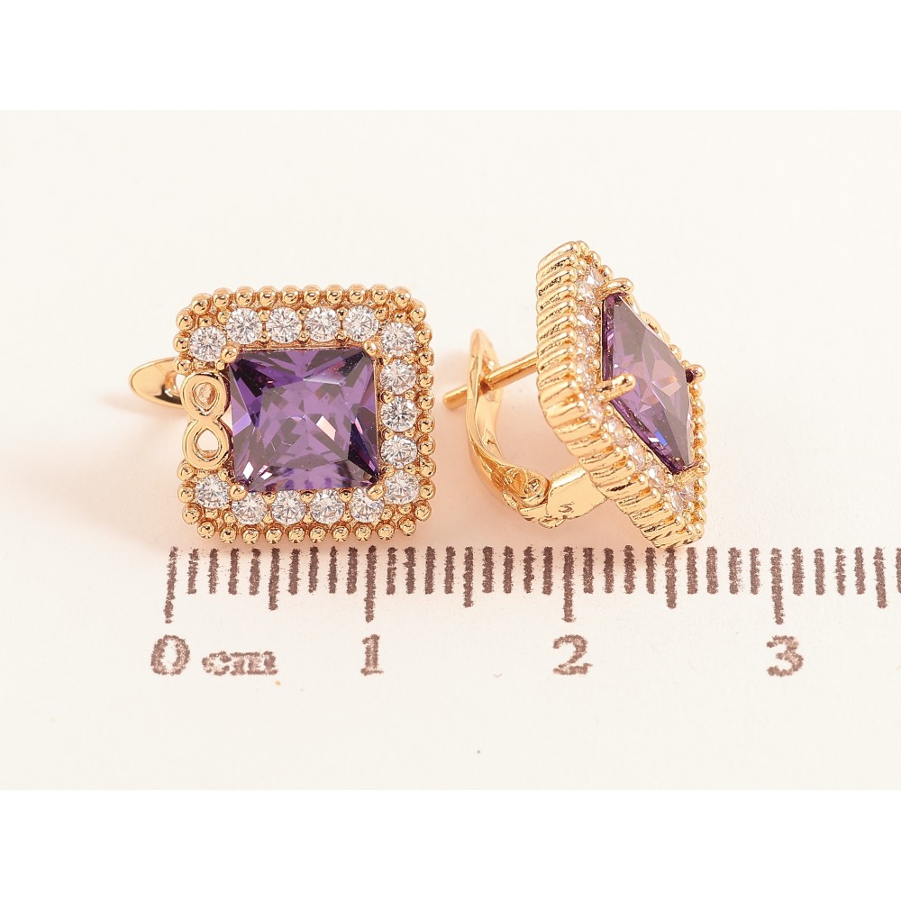 Сережки Xuping колір Позолота 18K англійський замок "Бузкові кристали в обрамленні"