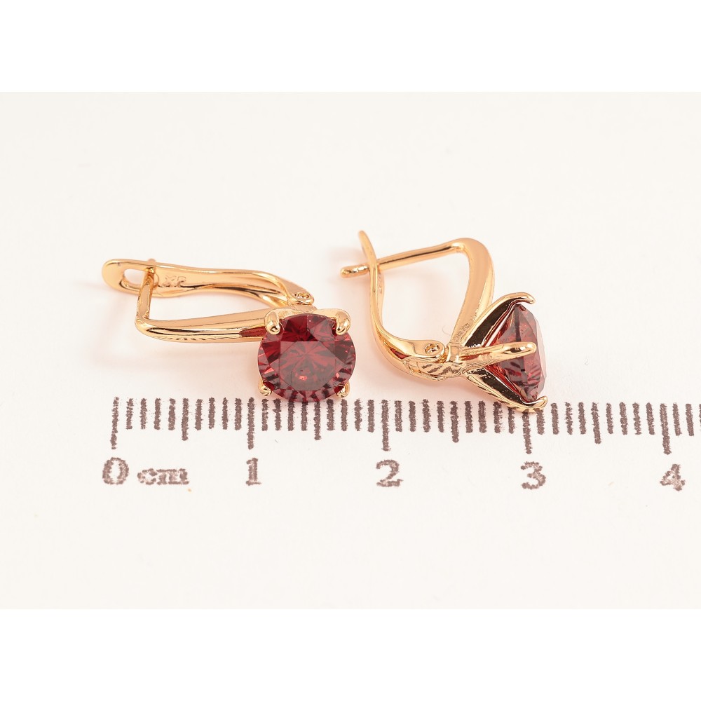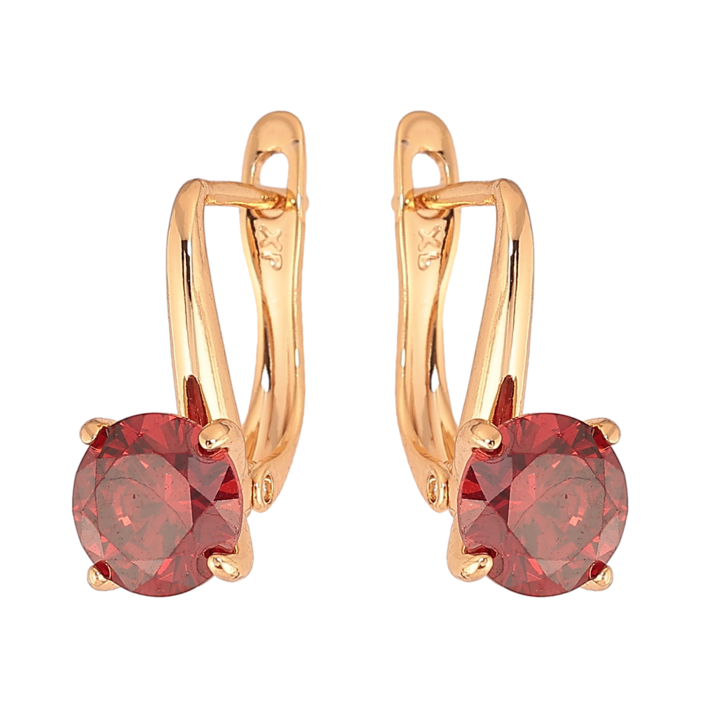 Сережки Xuping колір Позолота 18K англійський замок "Червоні кристали на дужках" ø 7мм