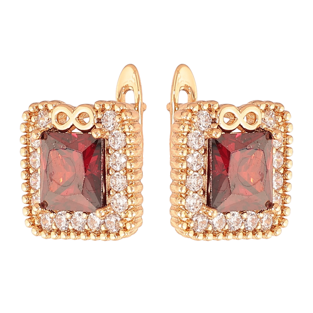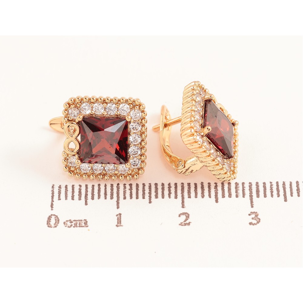 Сережки Xuping колір Позолота 18K англійський замок "Червоні кристали в обрамленні"