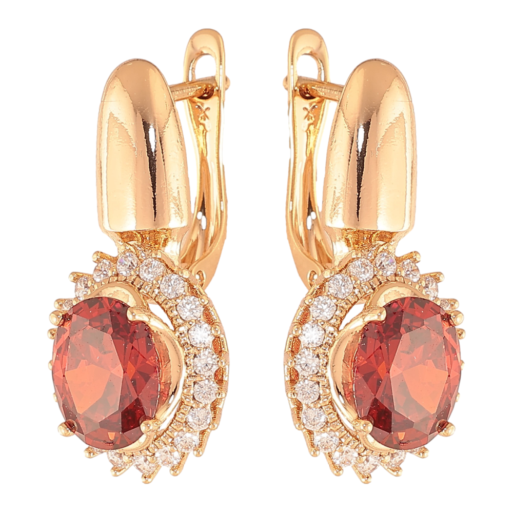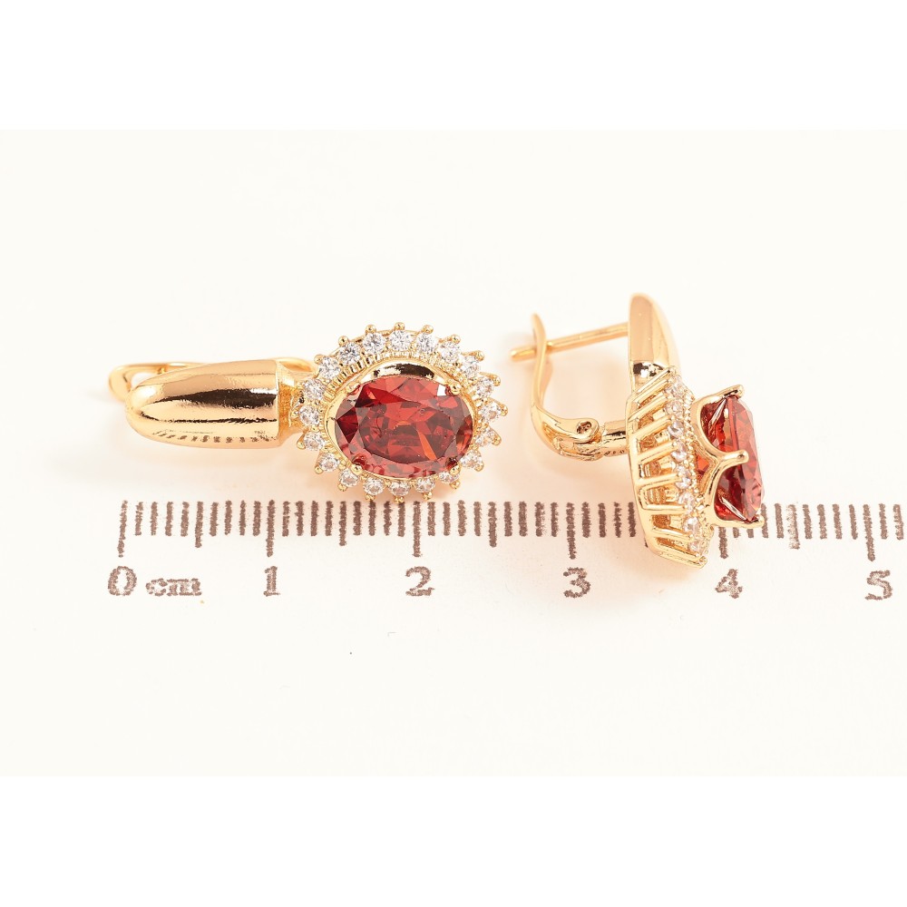 Сережки Xuping колір Позолота 18K англійський замок "Червоні кристали в обрамленні"