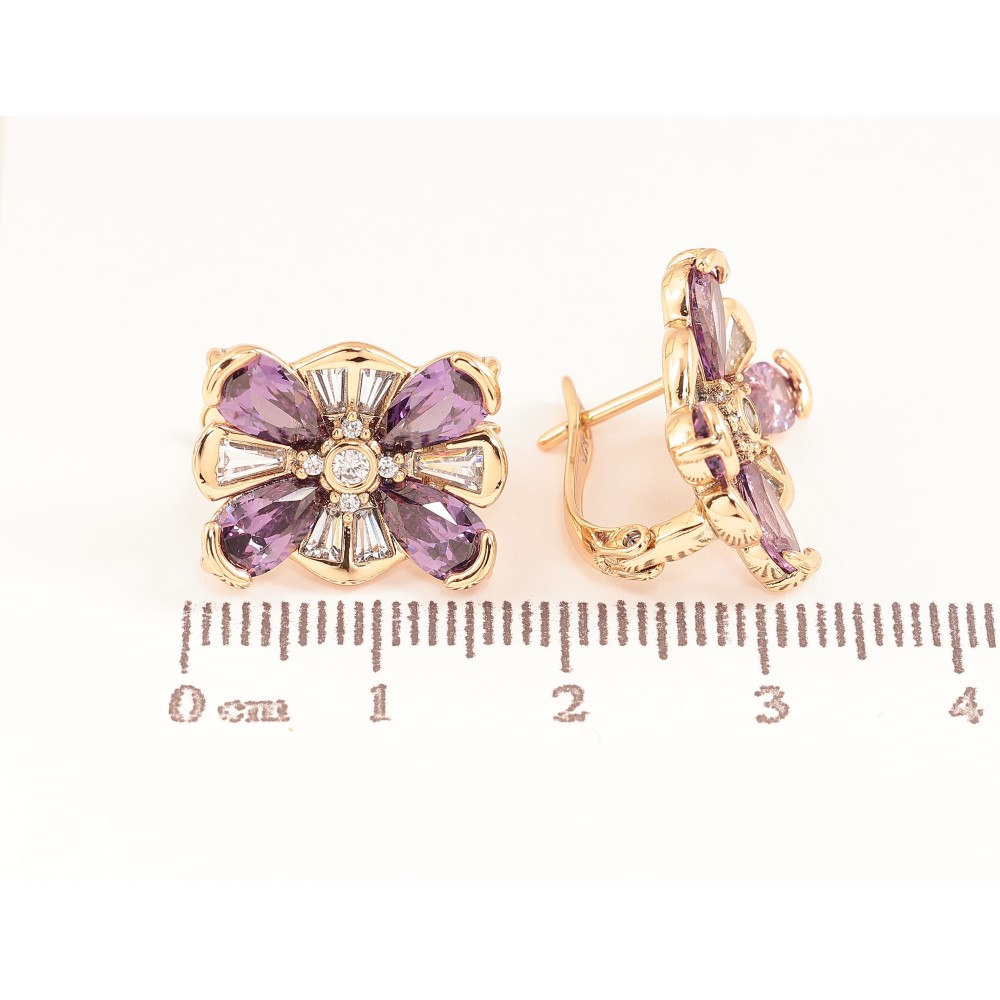 Сережки Xuping колір Позолота 18K англійський замок "Квіточки з бузковими кристалами"