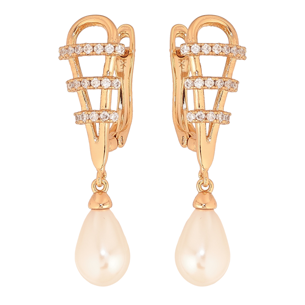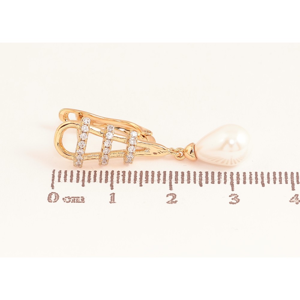 Сережки Xuping колір Позолота 18К англійський замок "Перлинні підвіски"