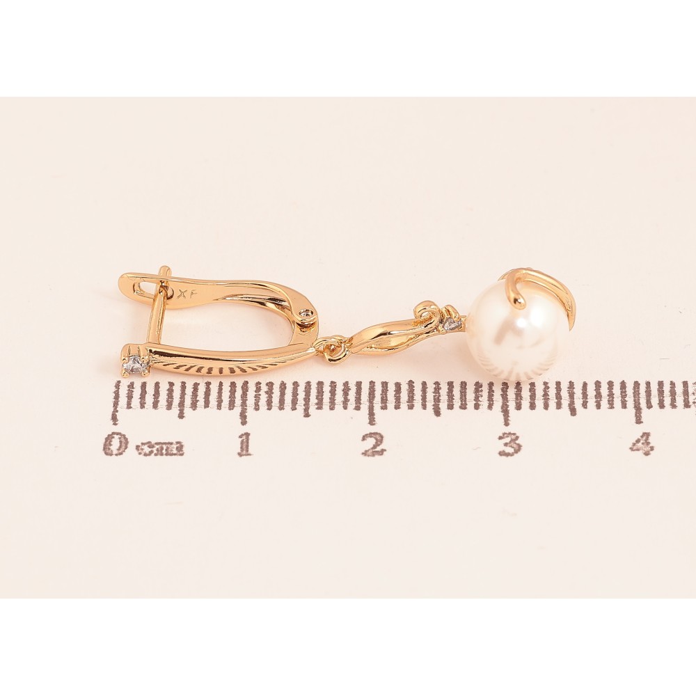 Сережки Xuping колір Позолота 18К англійський замок "Перлинні підвіски"