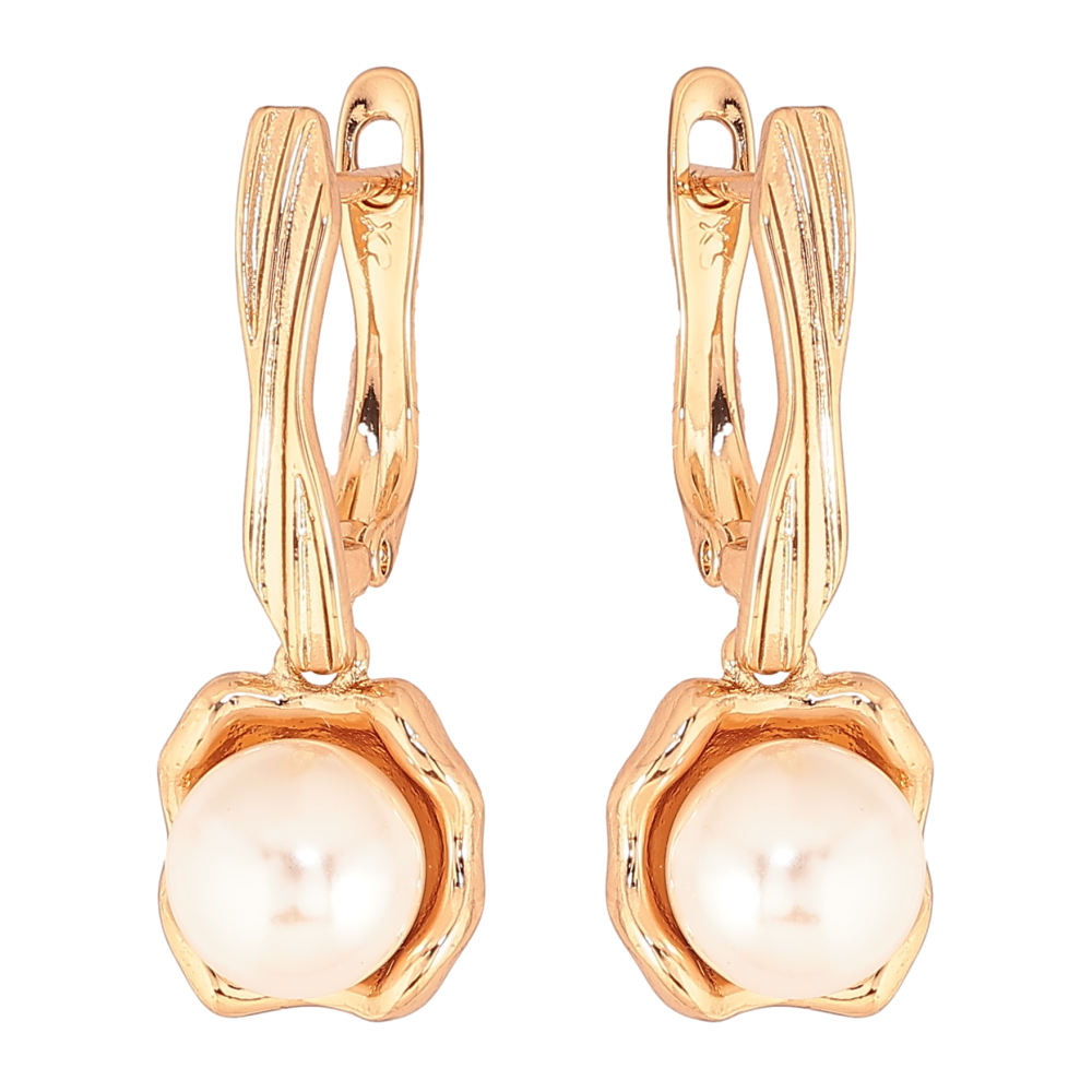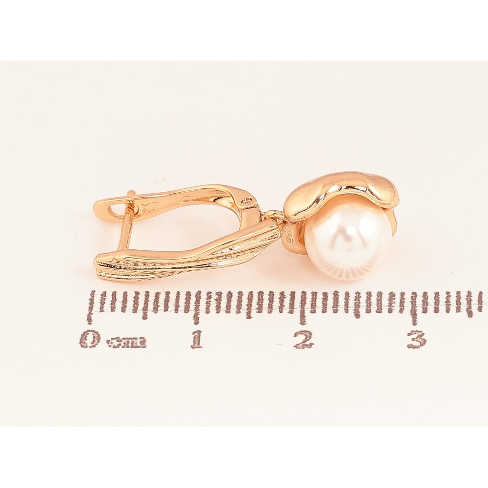 Сережки Xuping колір Позолота 18К англійський замок "Перлинні підвіски"