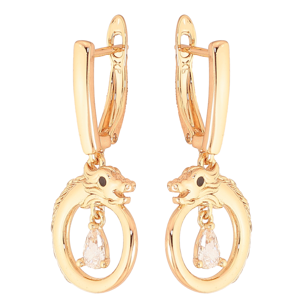 Сережки Xuping колір Позолота 18K англійський замок "Підвіски дракон з кристалами"