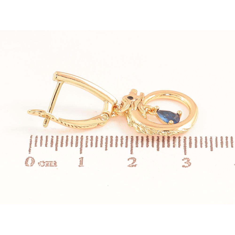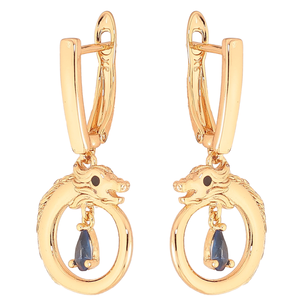 Сережки Xuping колір Позолота 18K англійський замок "Підвіски дракон з синіми кристалами"