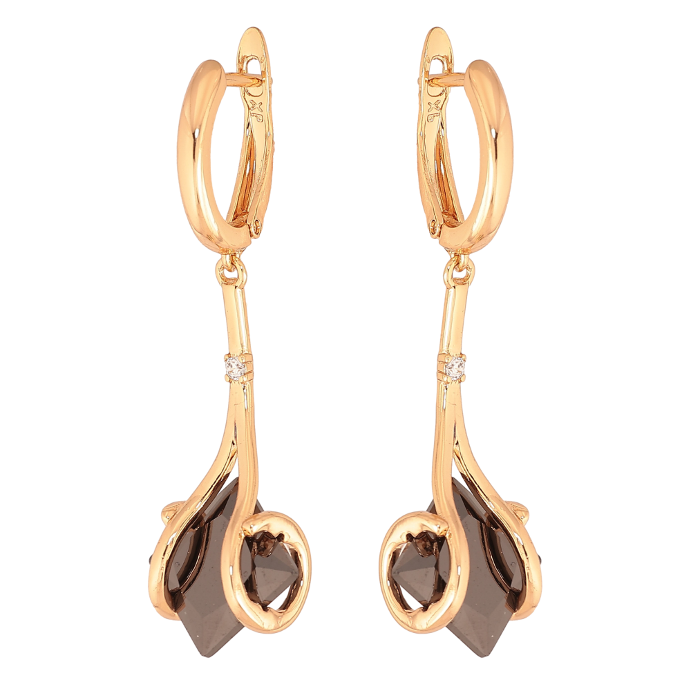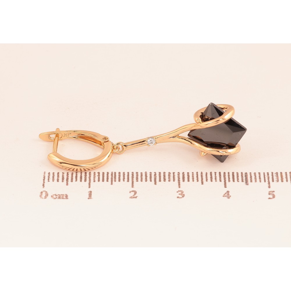 Сережки Xuping колір Позолота 18К англійський замок "Підвіски з чорними кристалами"