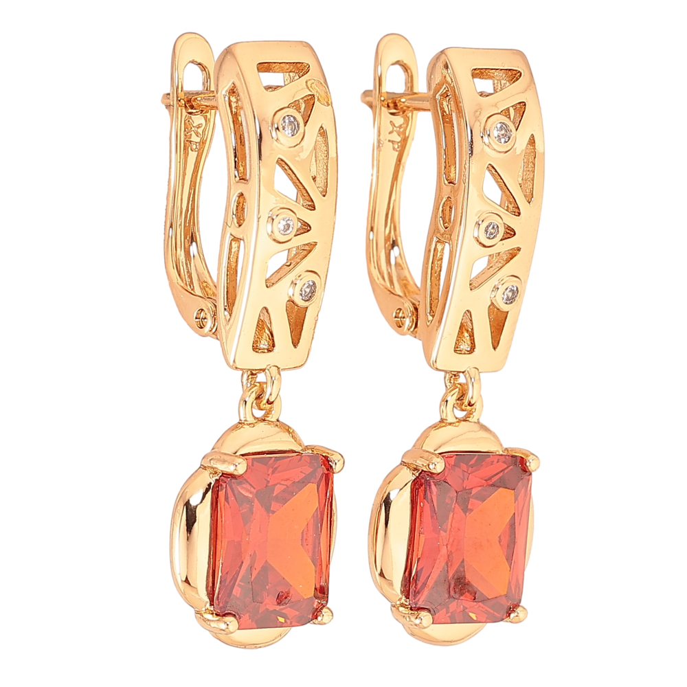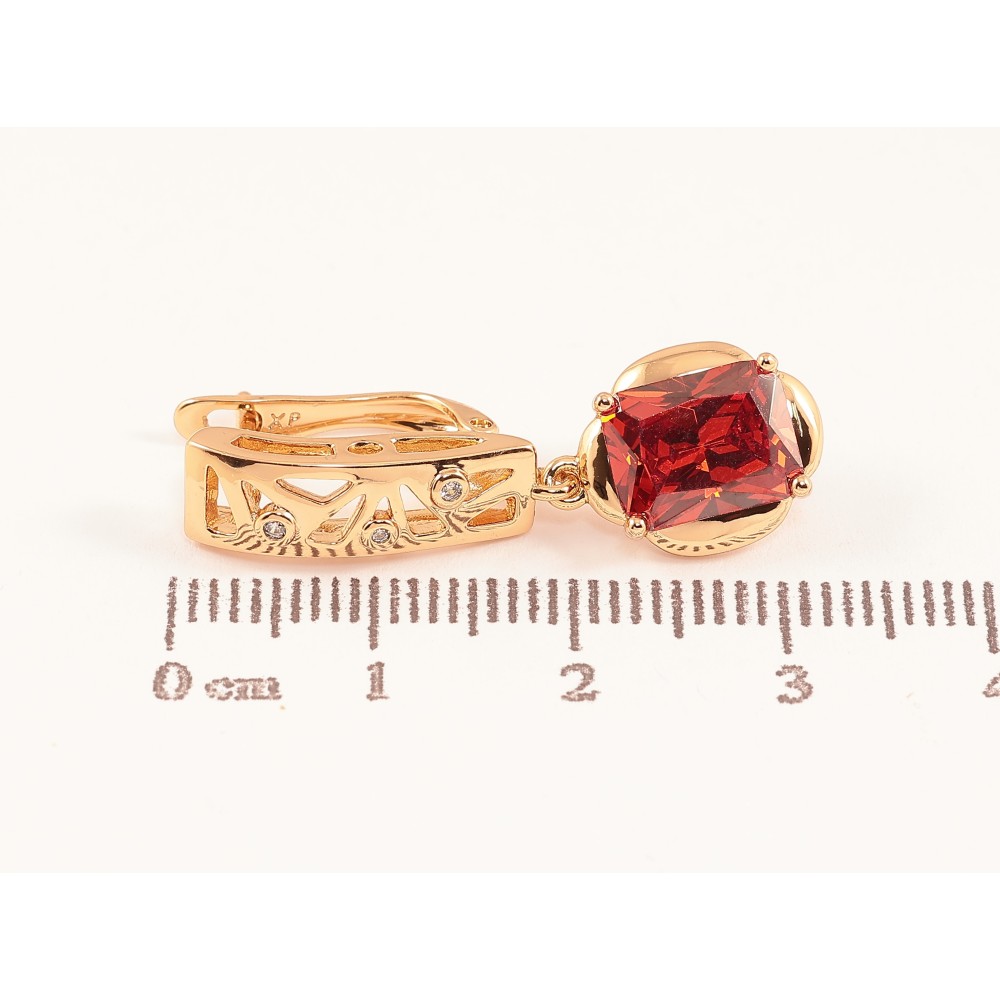 Сережки Xuping колір Позолота 18K англійський замок "Підвіски з красними кристалами"