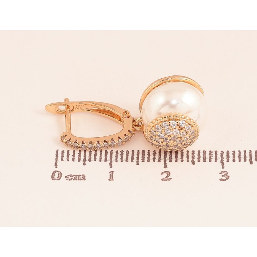 Сережки Xuping колір Позолота 18К англійський замок "Підвіски з перлинами та інкрустацією кристалами"