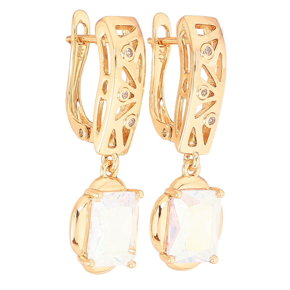 Сережки Xuping колір Позолота 18K англійський замок "Підвіски з райдужними кристалами"