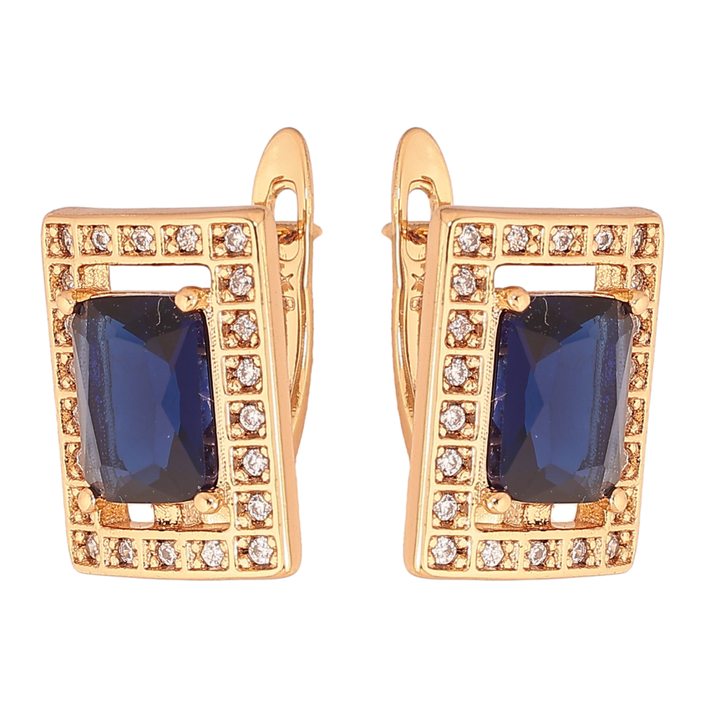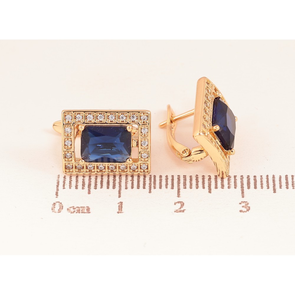 Сережки Xuping колір Позолота 18К англійський замок "Прямокутники з синіми кристалами"