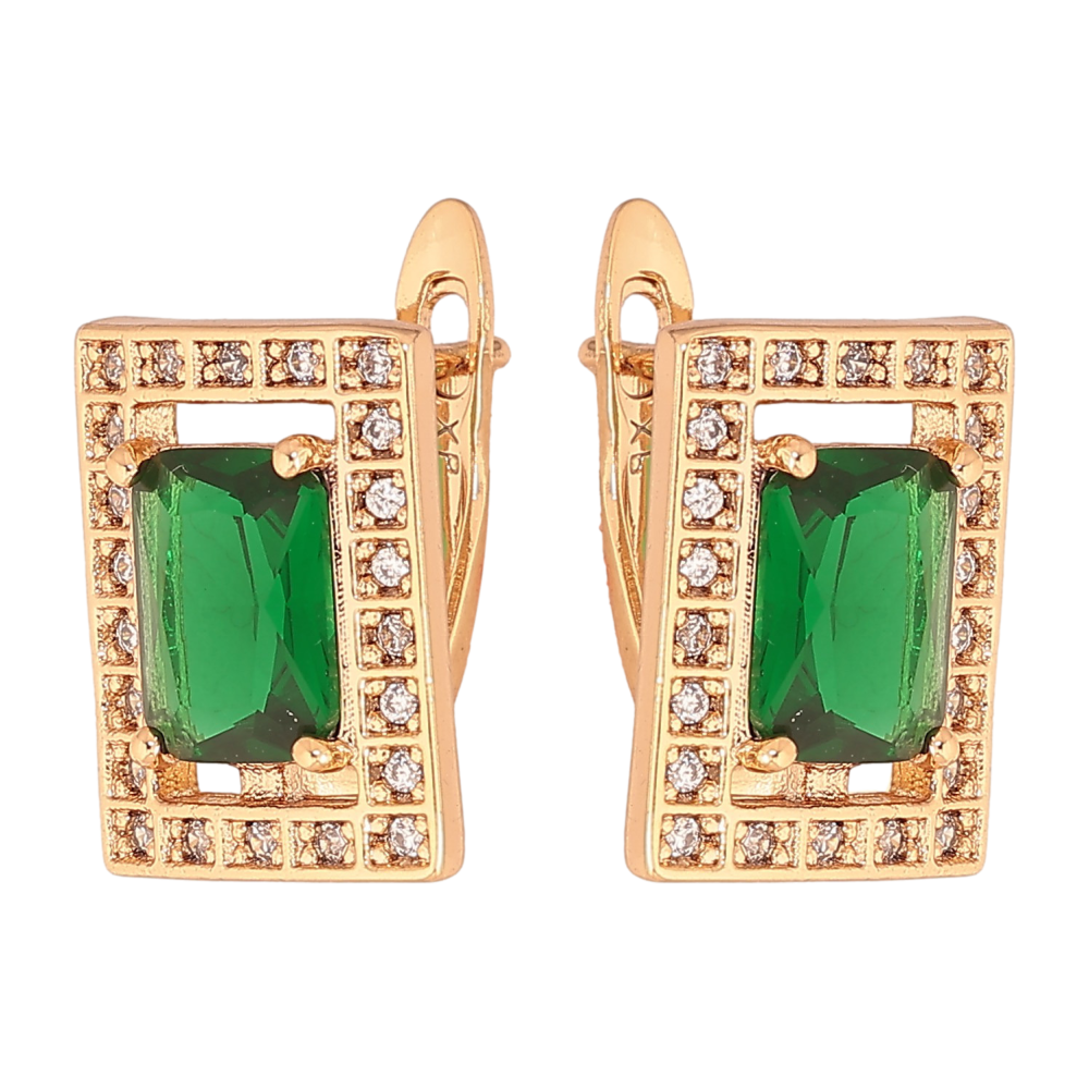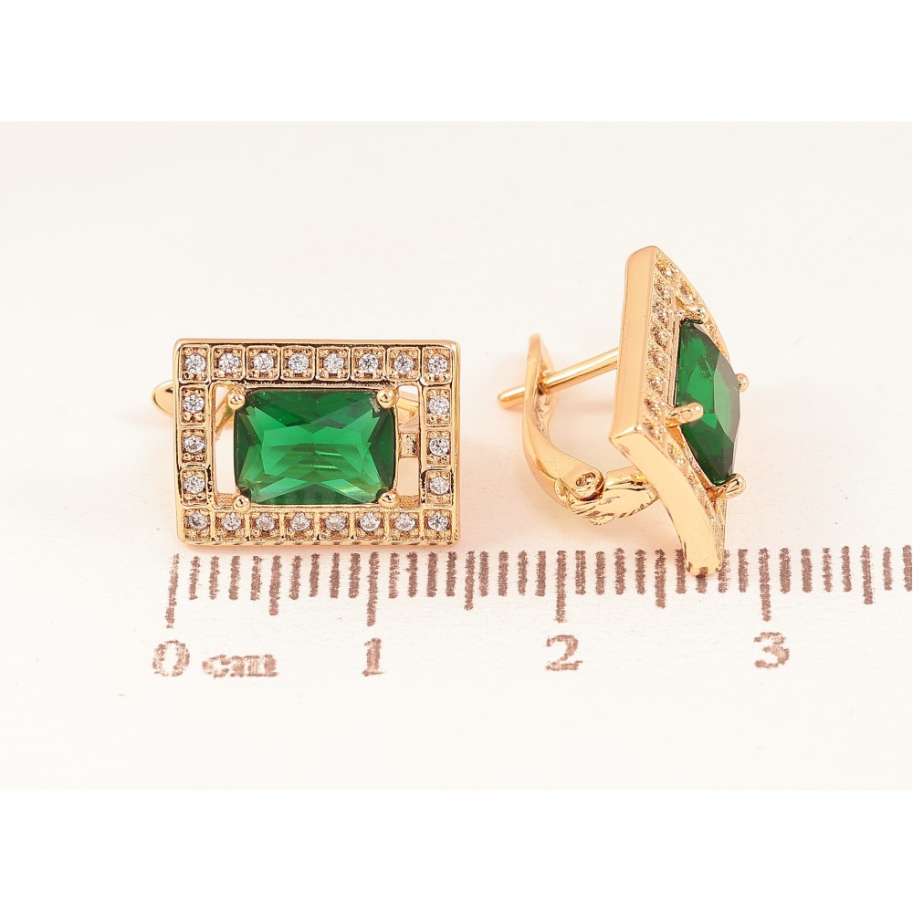 Сережки Xuping колір Позолота 18К англійський замок "Прямокутники з зеленими кристалами"