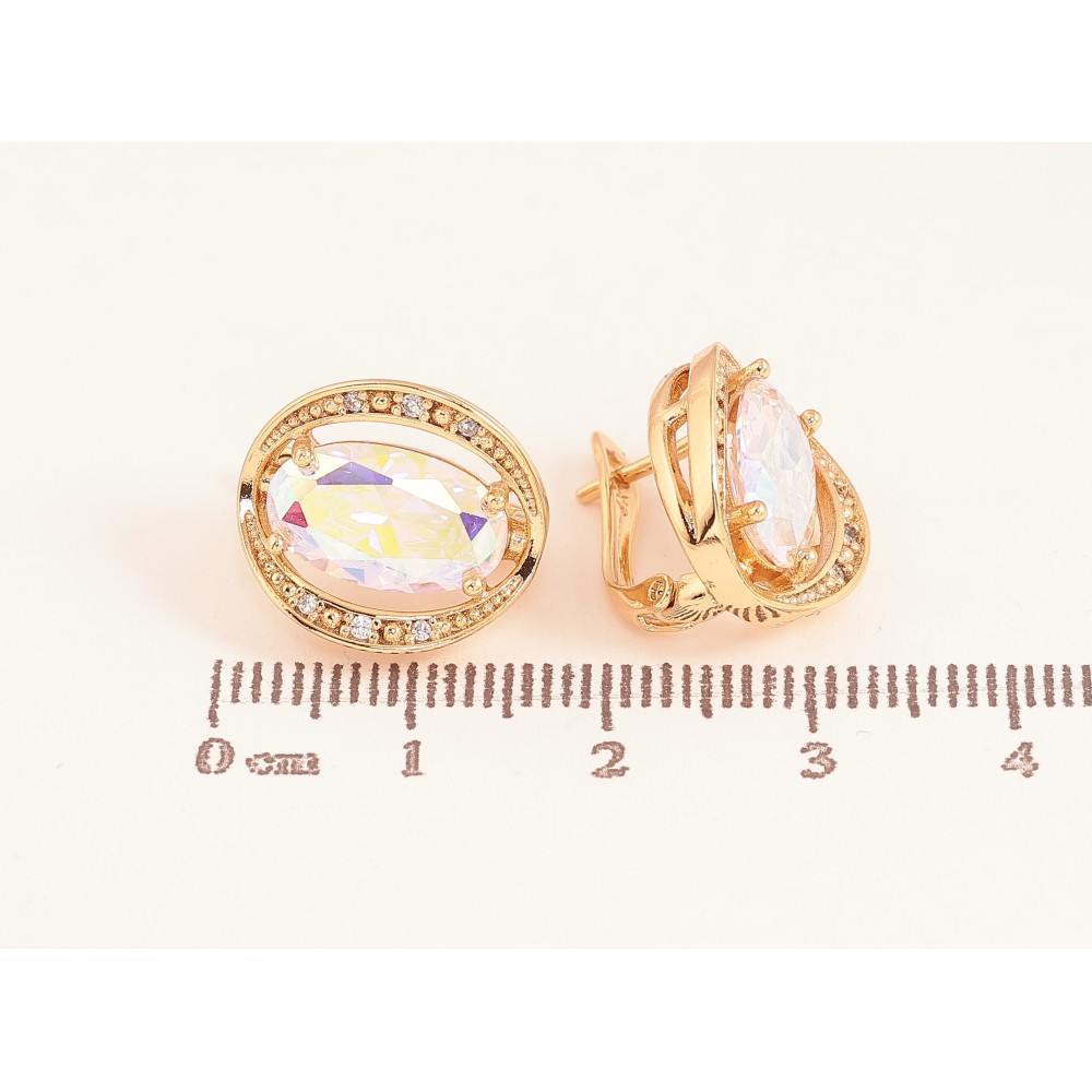 Сережки Xuping колір Позолота 18К англійський замок "Райдужні кристали в обрамленні"