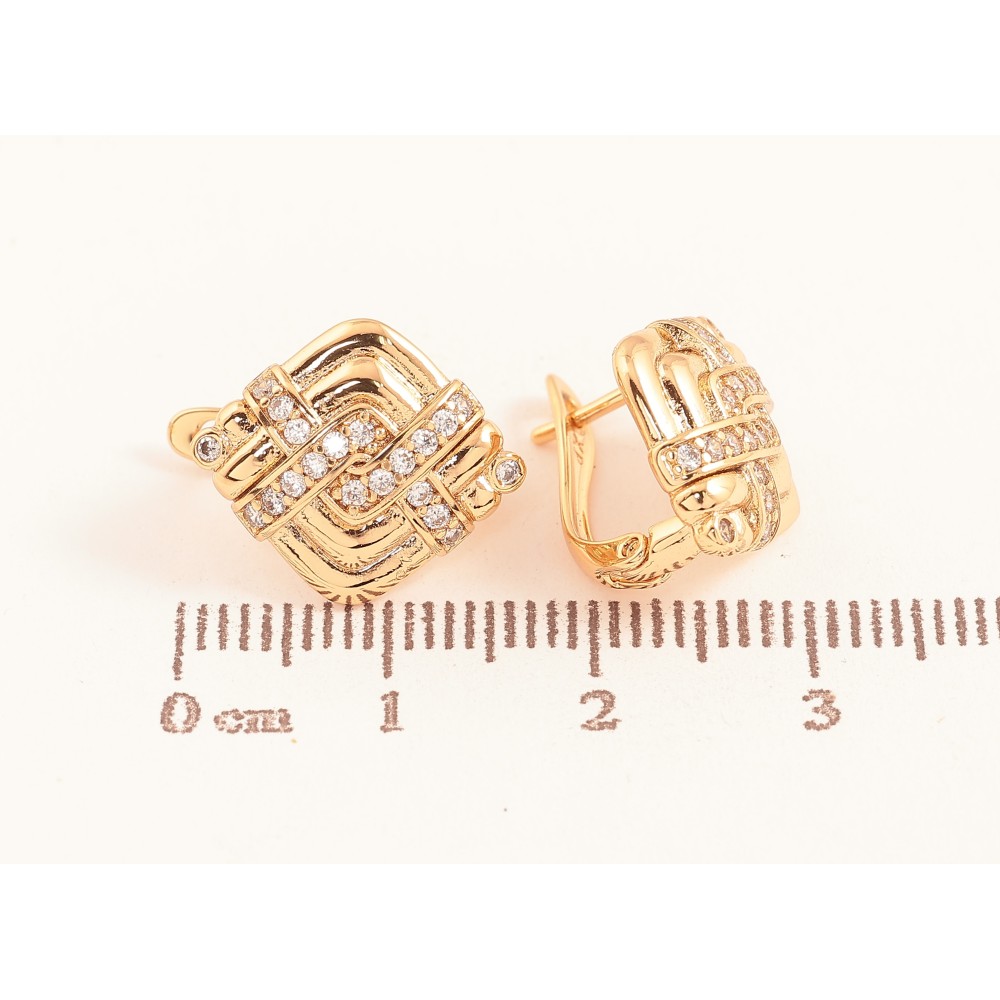 Сережки Xuping колір Позолота 18K англійський замок "Ромби з візерунком кристалами"