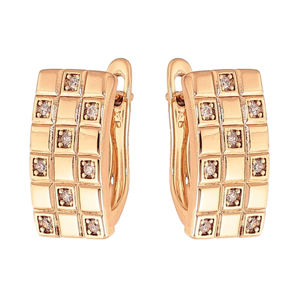 Сережки Xuping колір Позолота 18К англійський замок "Шаховий візерунок із кристалами"