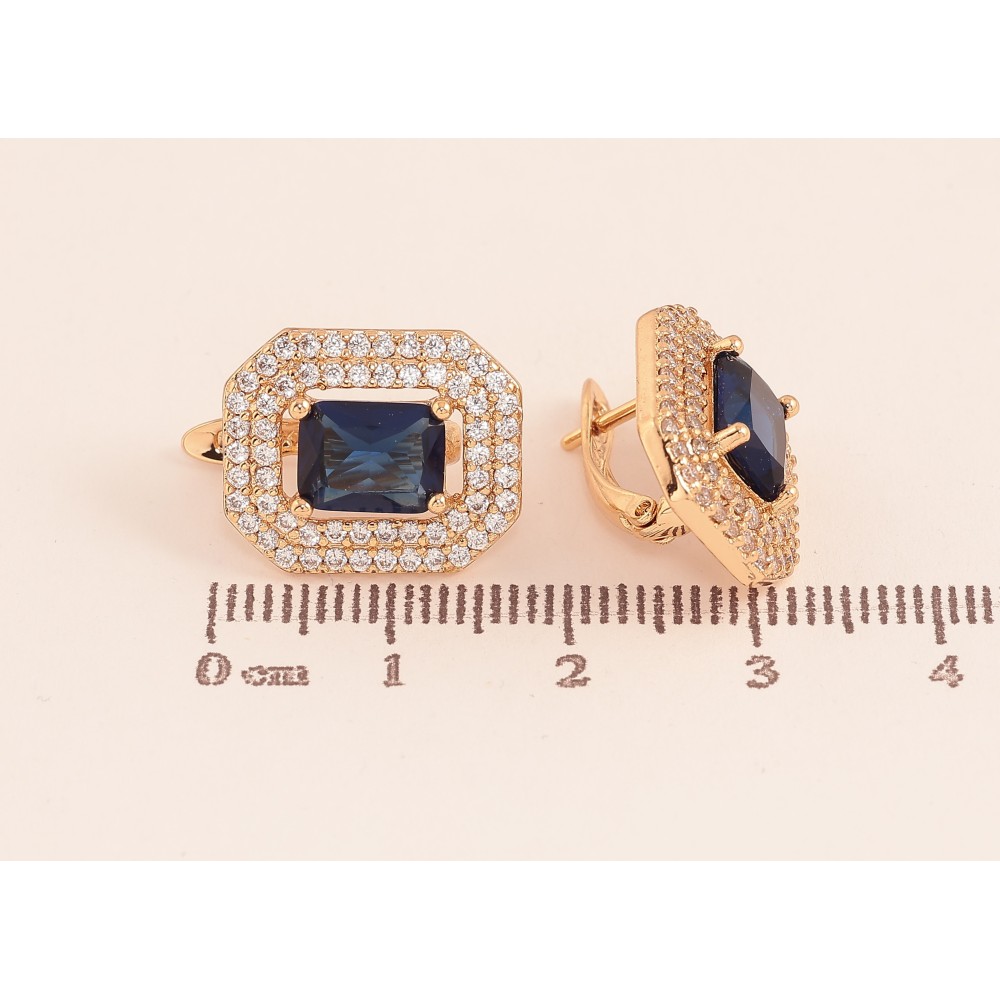 Сережки Xuping колір Позолота 18К англійський замок "Сині кристали з інкрустацією"