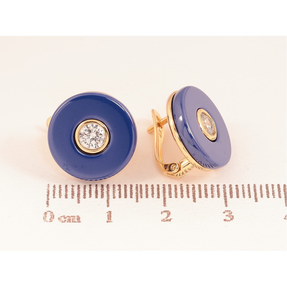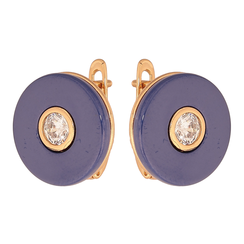 Сережки Xuping колір Позолота 18К англійський замок "Синя кераміка з кристалами"