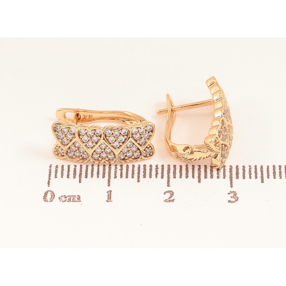 Сережки Xuping колір Позолота 18K англійський замок "Візерунок серця з кристалами"
