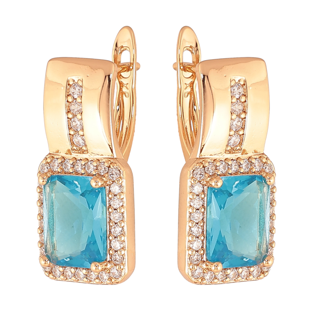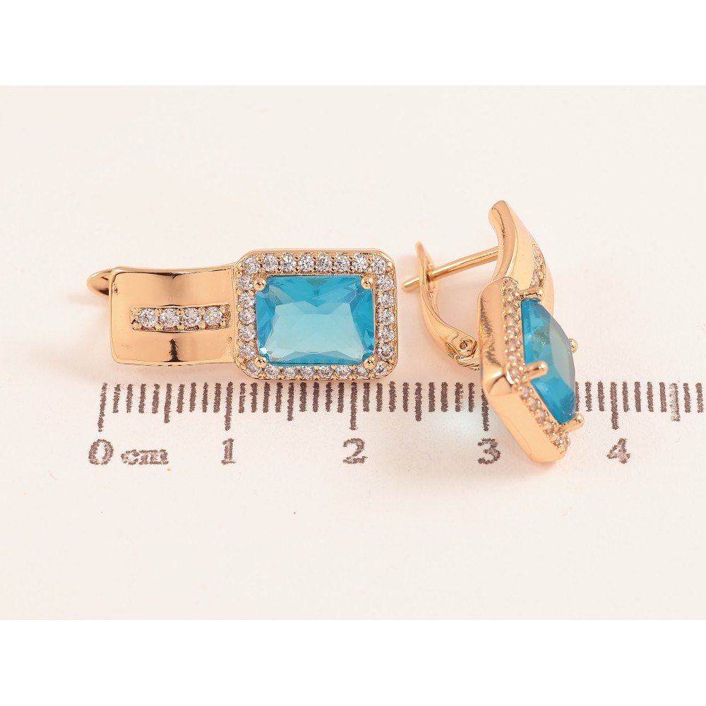 Сережки Xuping колір Позолота 18K англійський замок "Візерунок з блакитними кристалами"