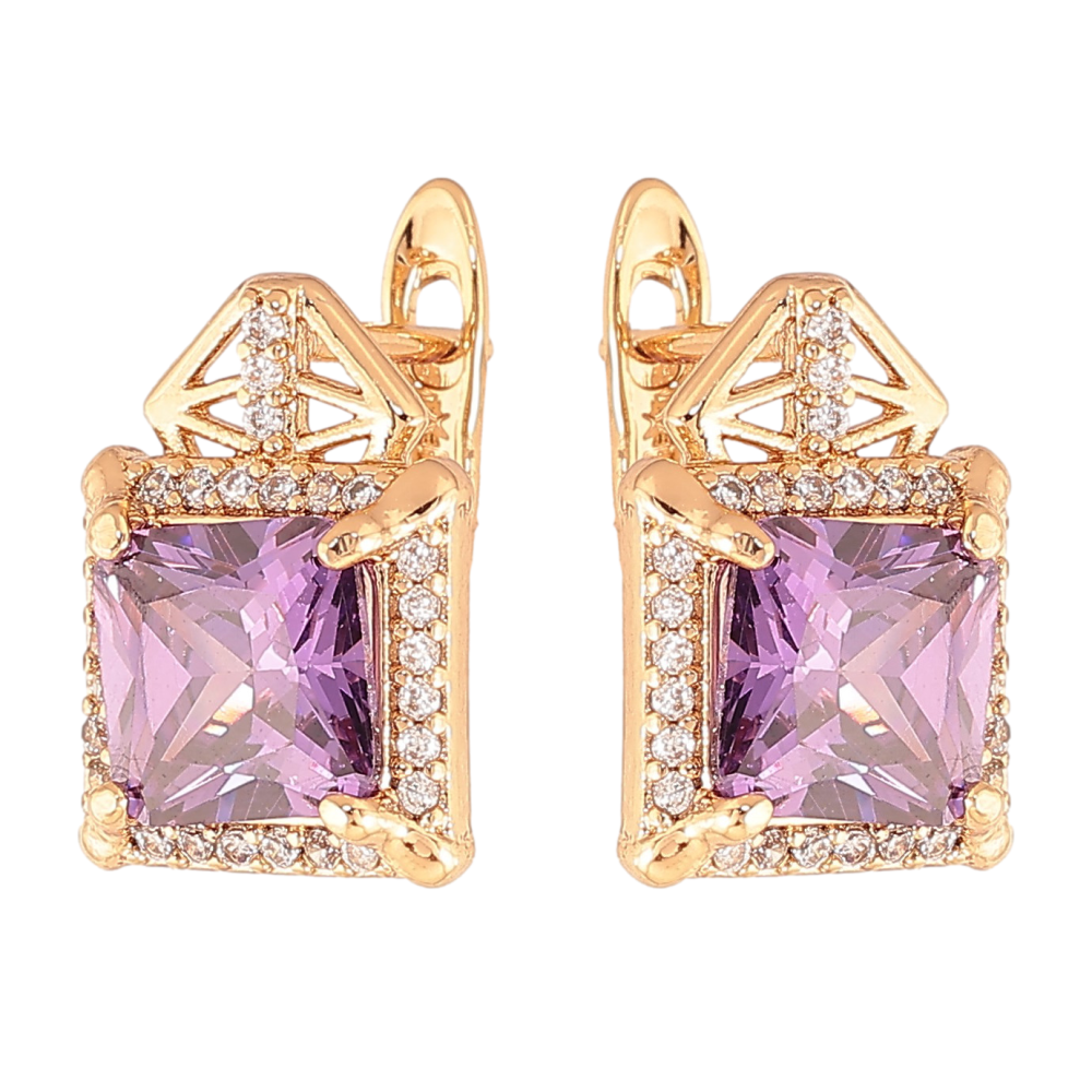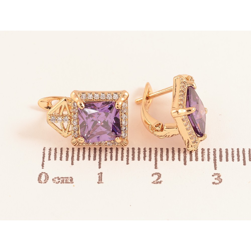 Сережки Xuping колір Позолота 18K англійський замок "Візерунок з бузковими кристалами"