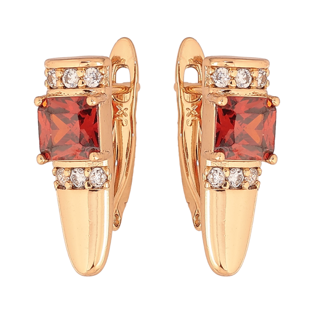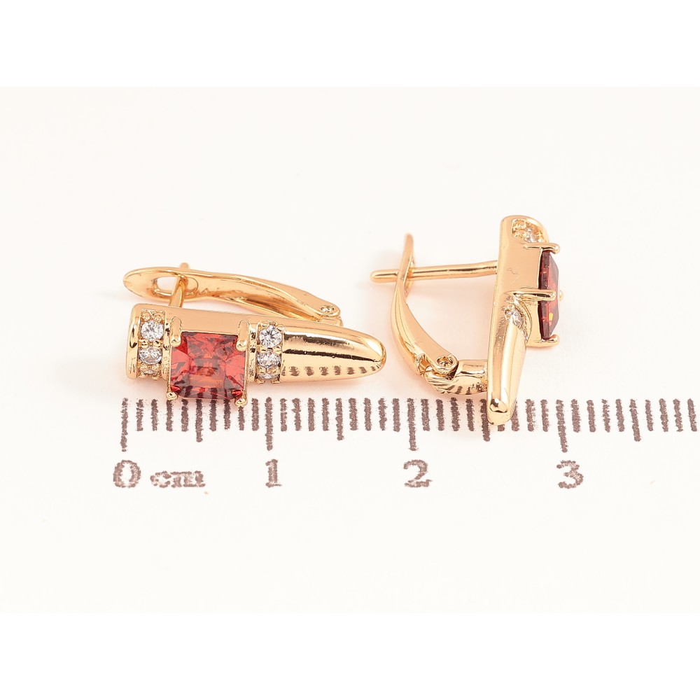 Сережки Xuping колір Позолота 18K англійський замок "Візерунок з червоними кристалами"