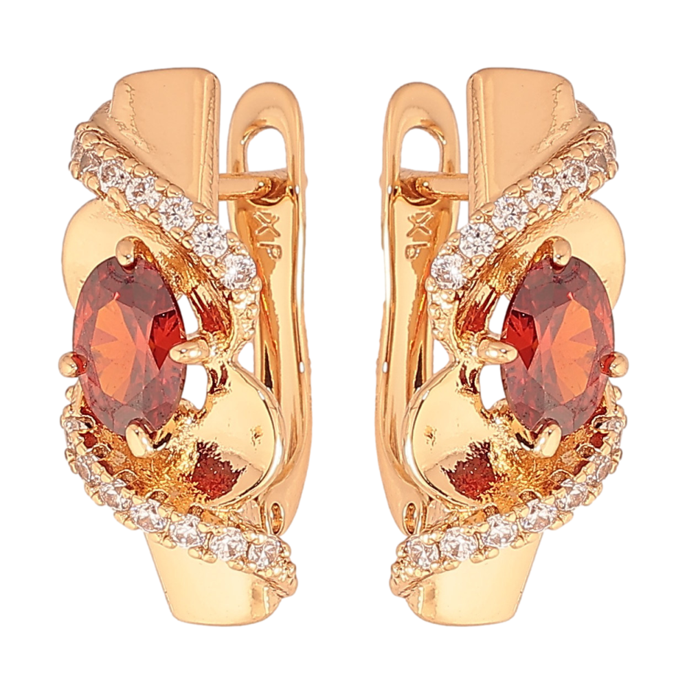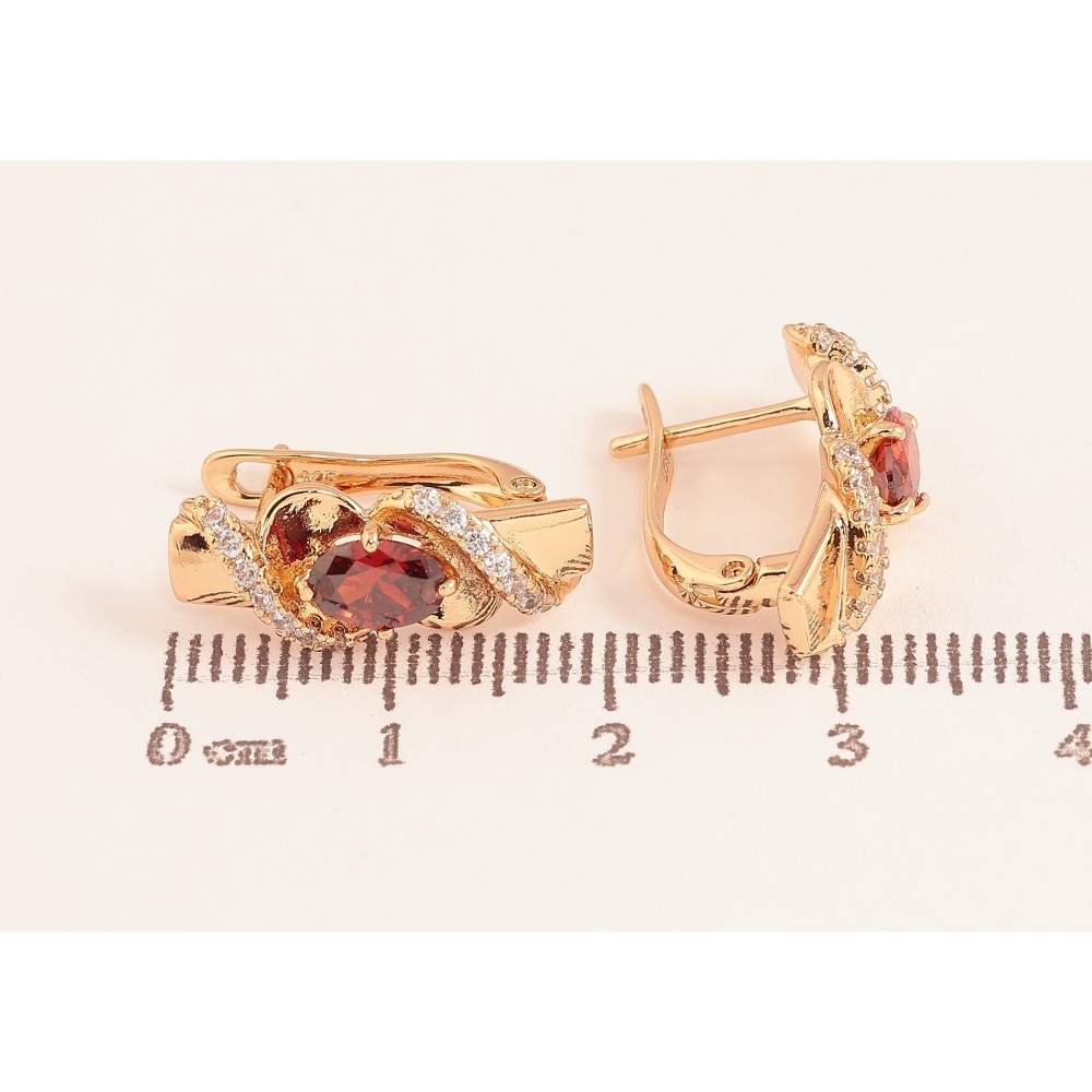 Сережки Xuping колір Позолота 18К англійський замок "Візерунок з червоними кристалами"
