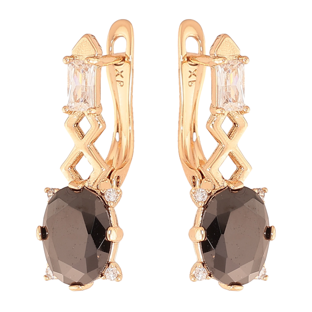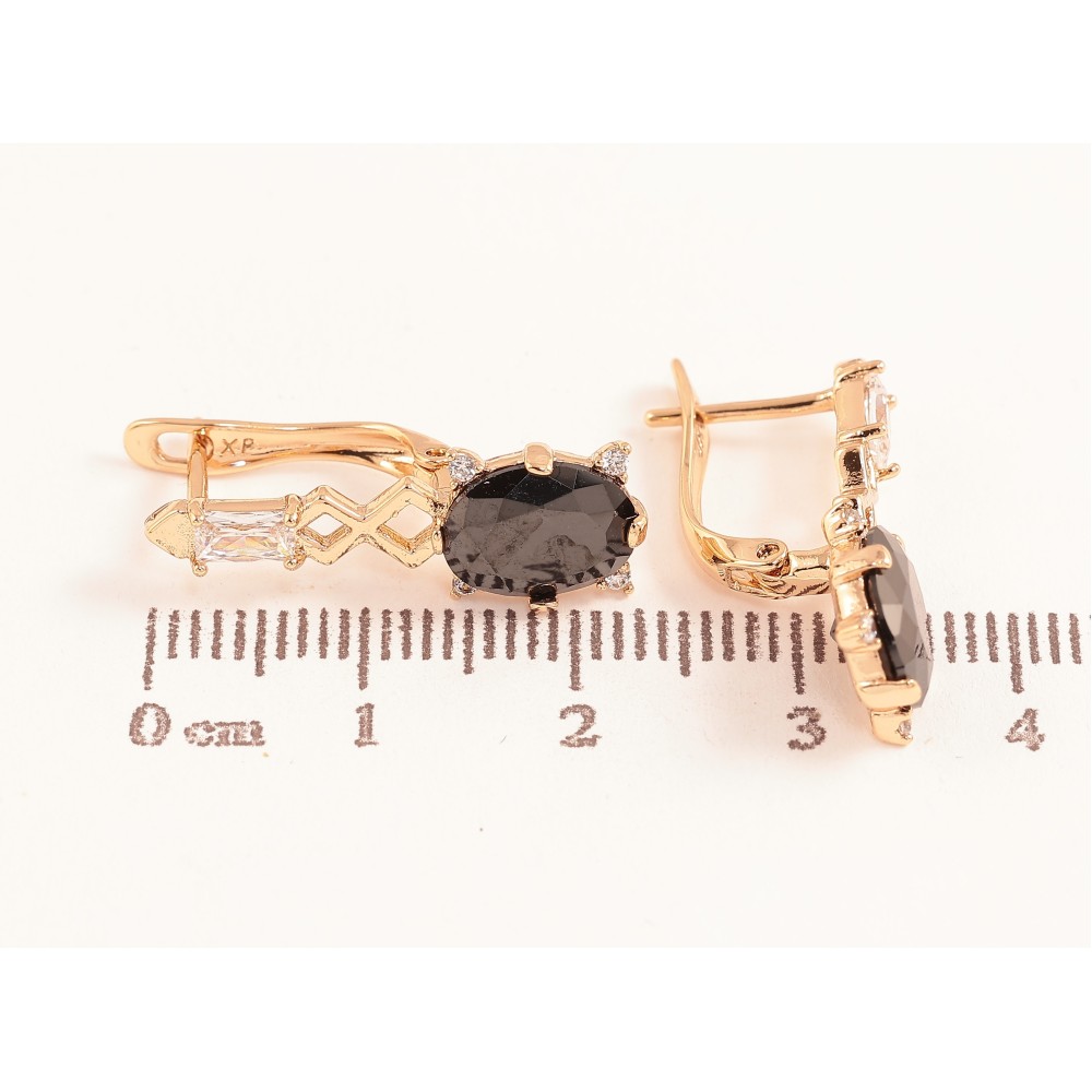 Сережки Xuping колір Позолота 18K англійський замок "Візерунок з чорними кристалами"