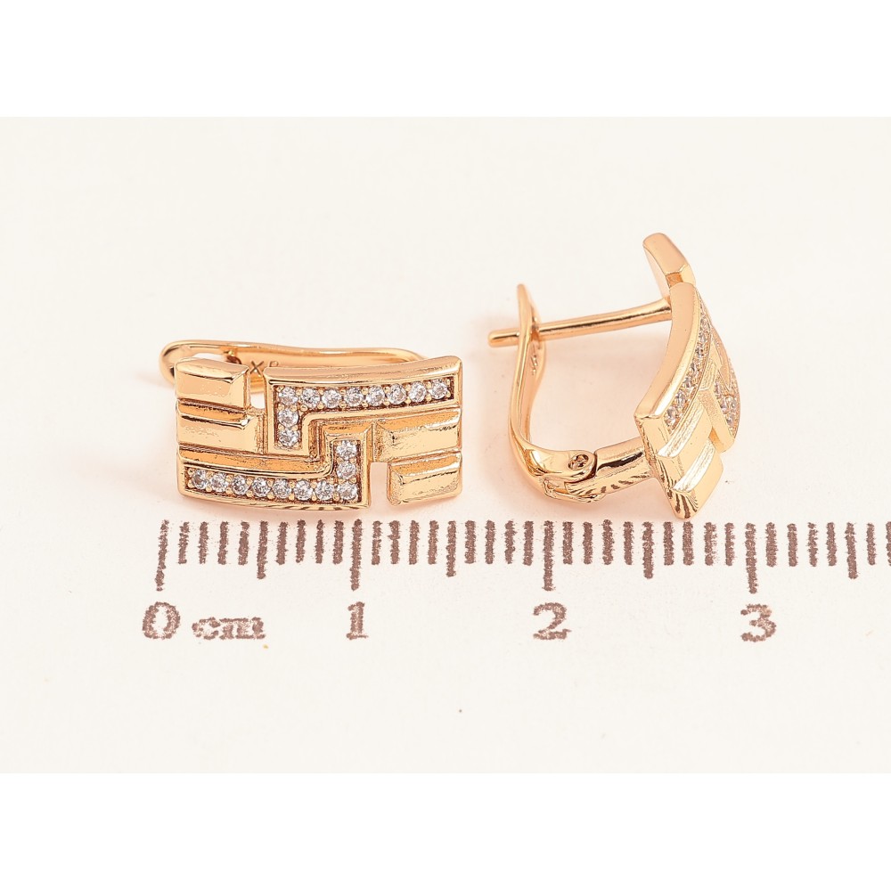 Сережки Xuping колір Позолота 18K англійський замок "Візерунок з кристалами"