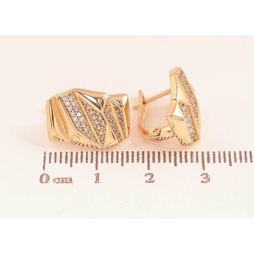Сережки Xuping колір Позолота 18K англійський замок "Візерунок з кристалами"