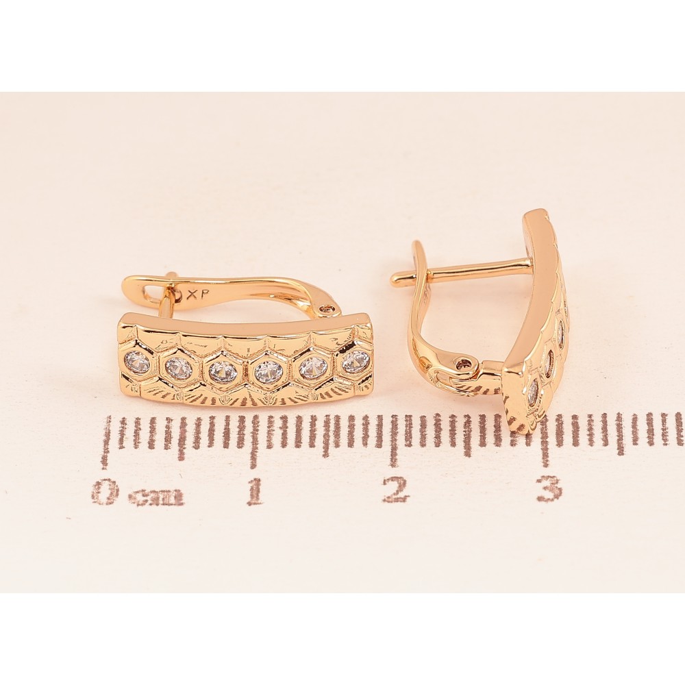 Сережки Xuping колір Позолота 18К англійський замок "Візерунок з кристалами"