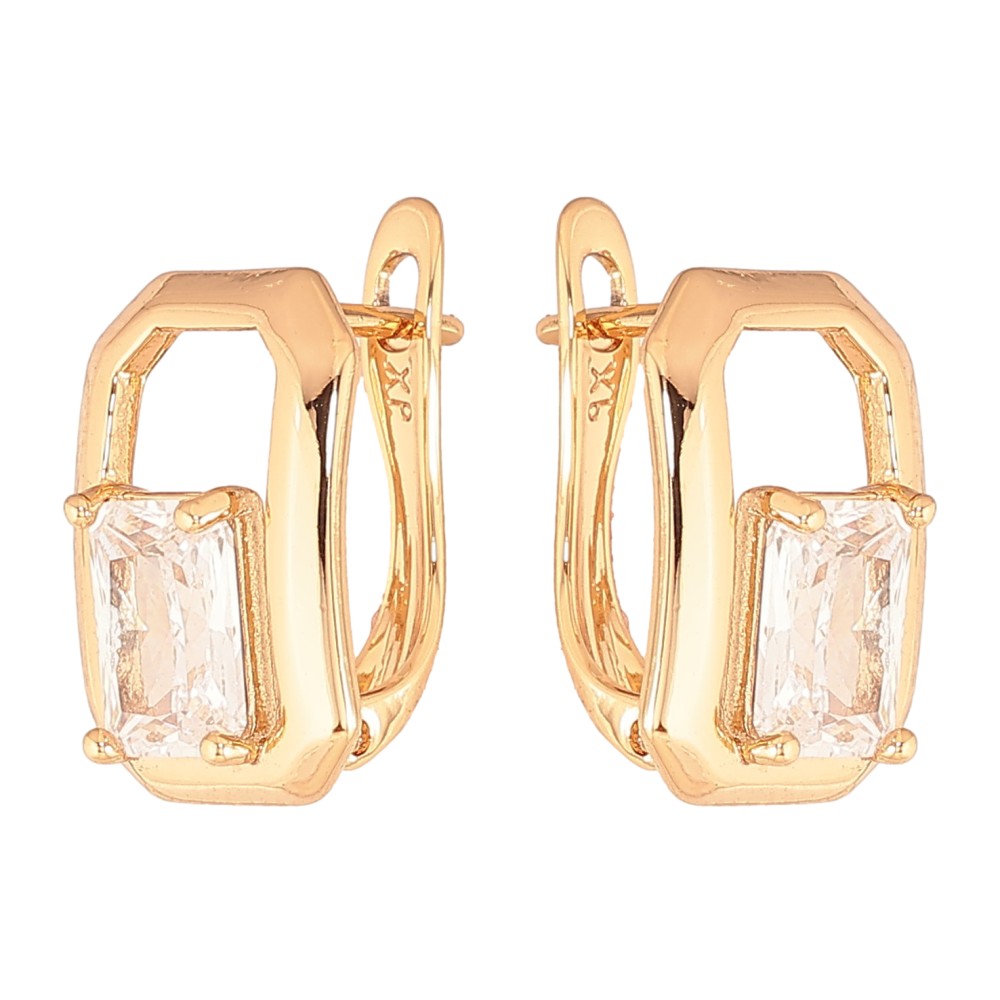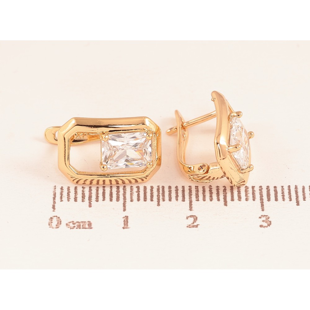 Сережки Xuping колір Позолота 18К англійський замок "Візерунок з кристалами"