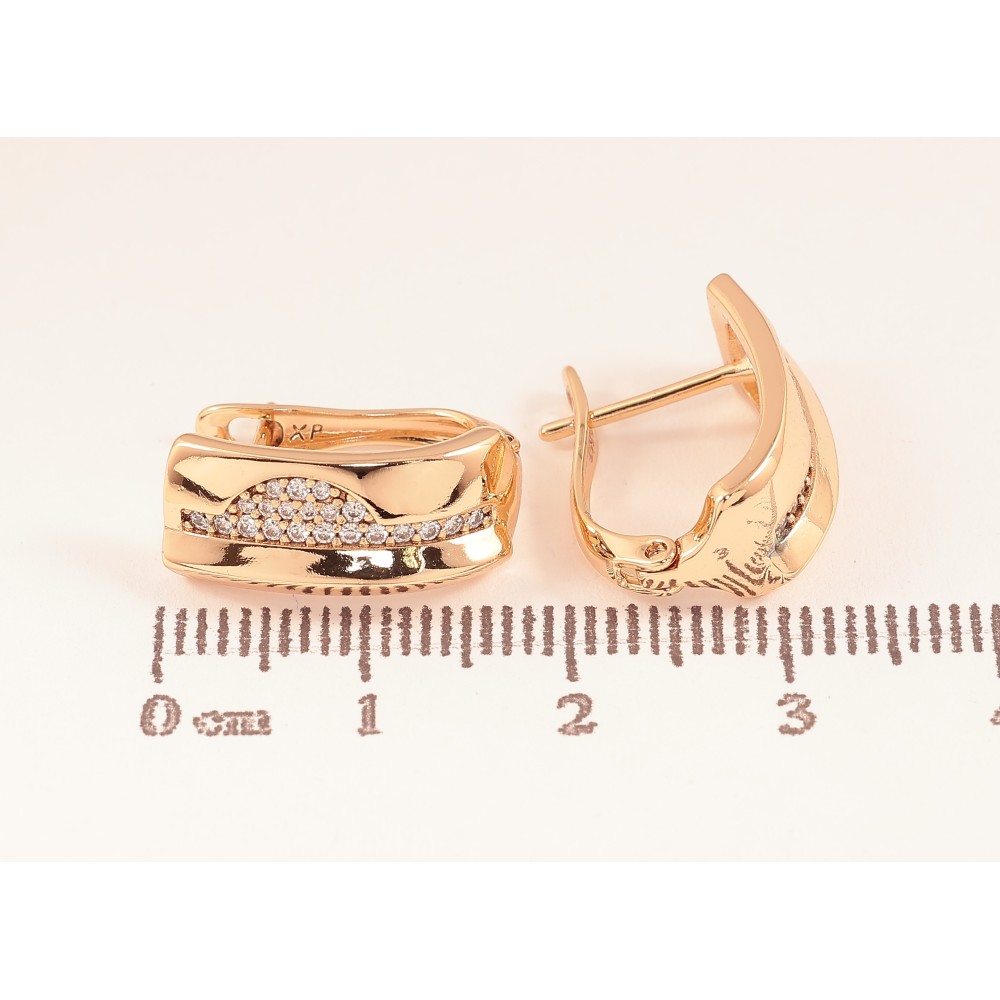 Сережки Xuping колір Позолота 18К англійський замок "Візерунок з кристалами"