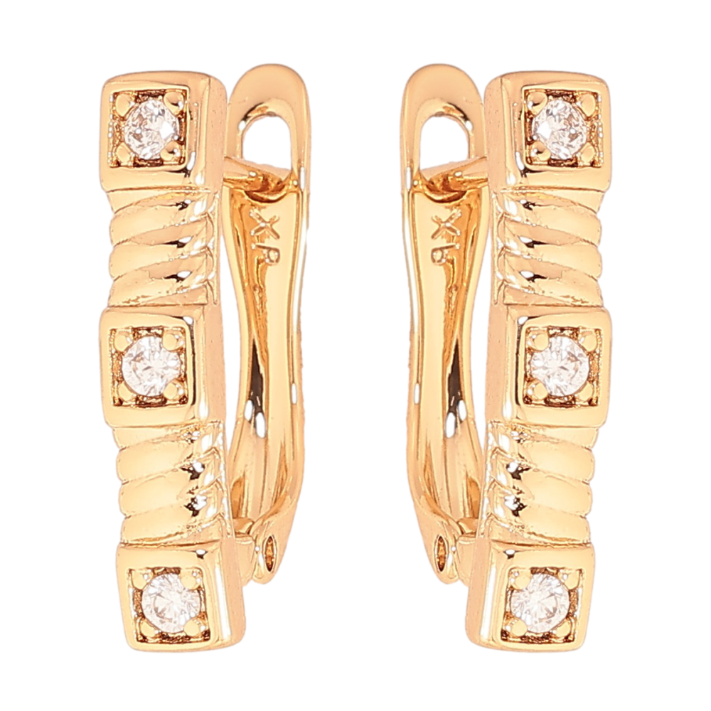 Сережки Xuping колір Позолота 18К англійський замок "Візерунок з кристалами"