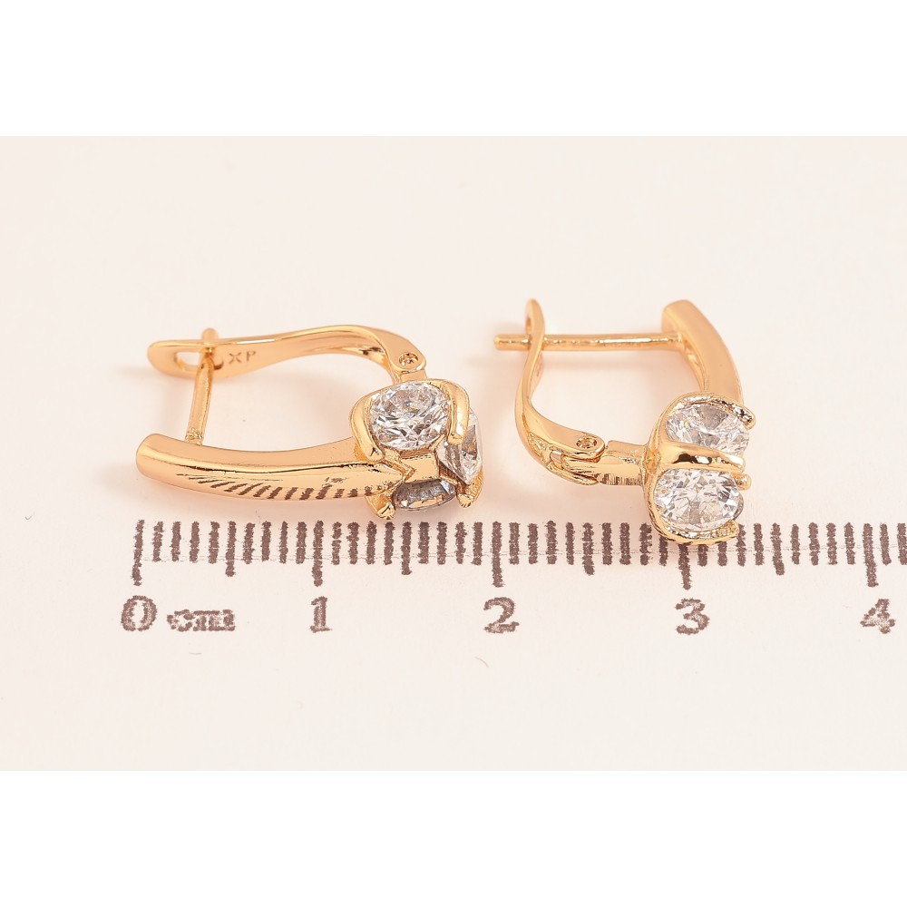 Сережки Xuping колір Позолота 18К англійський замок "Візерунок з кристалами"