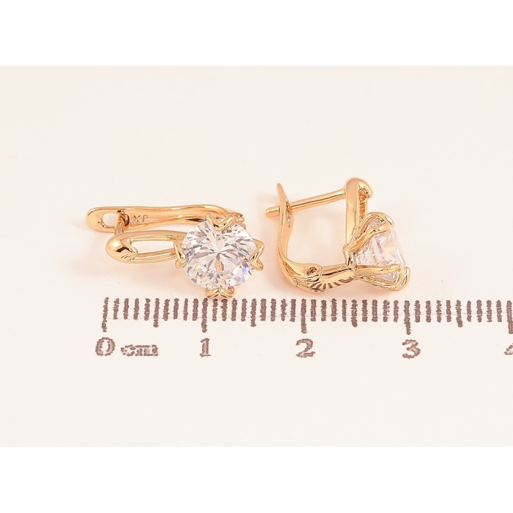 Сережки Xuping колір Позолота 18К англійський замок "Візерунок з кристалами"