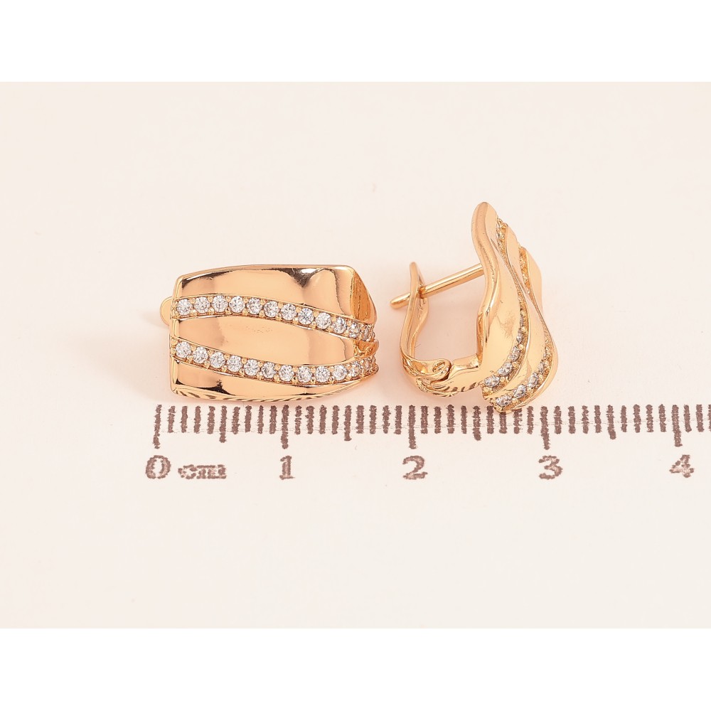 Сережки Xuping колір Позолота 18К англійський замок "Візерунок з кристалами"