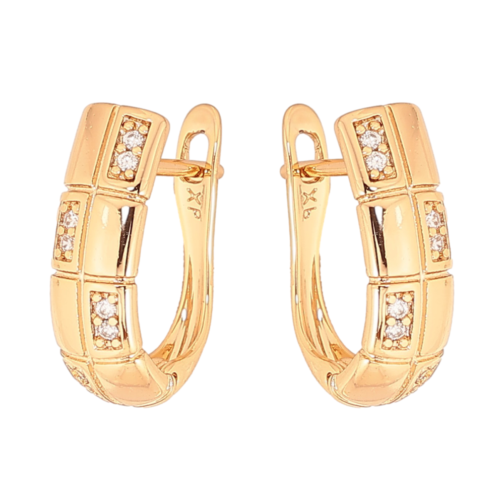 Сережки Xuping колір Позолота 18К англійський замок "Візерунок з кристалами"