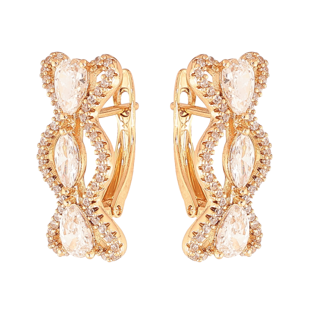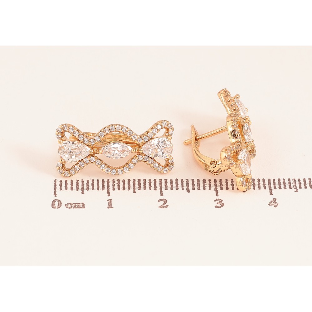 Сережки Xuping колір Позолота 18К англійський замок "Візерунок з кристалами"
